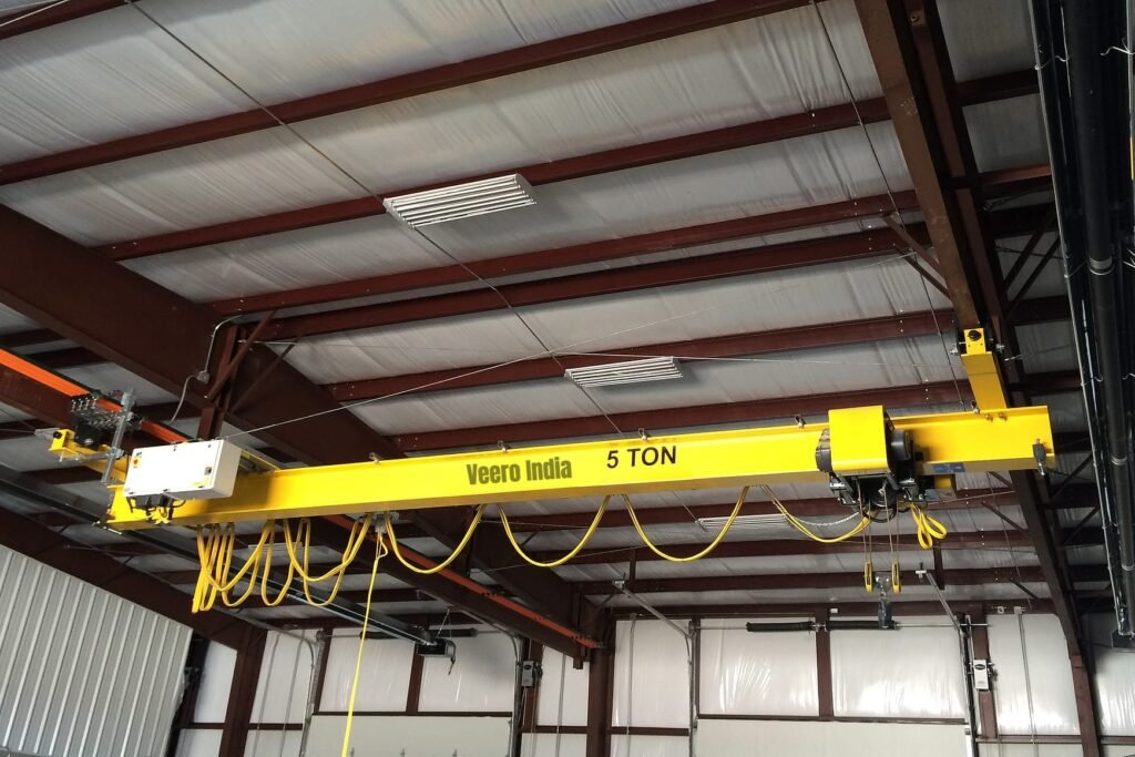 Under-slung cranes are designed to be mounted on the underside of a structure, which helps save valuable overhead space in warehouses or factories.